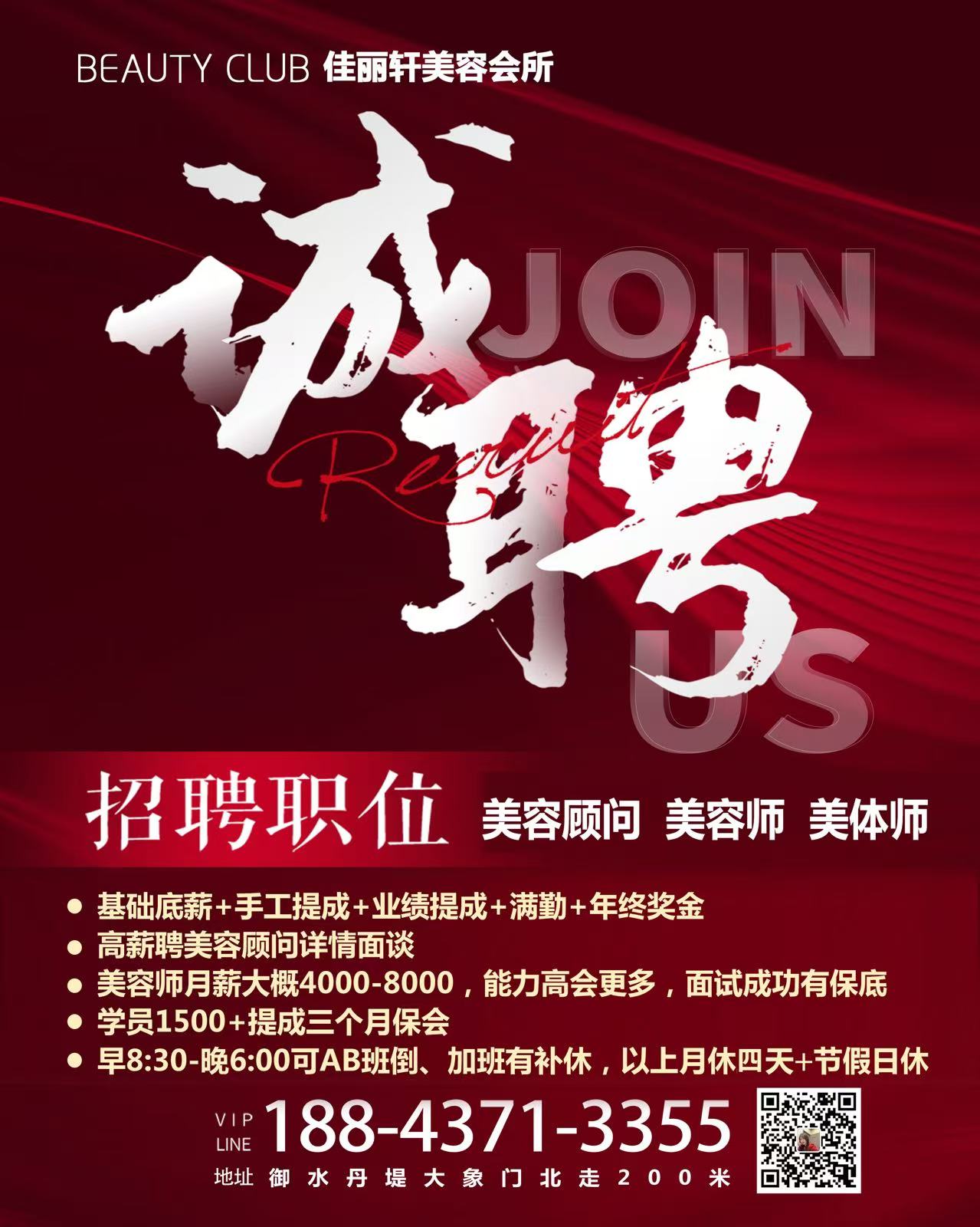 佳麗軒美容會所招美容顧問、美容師、美體師。