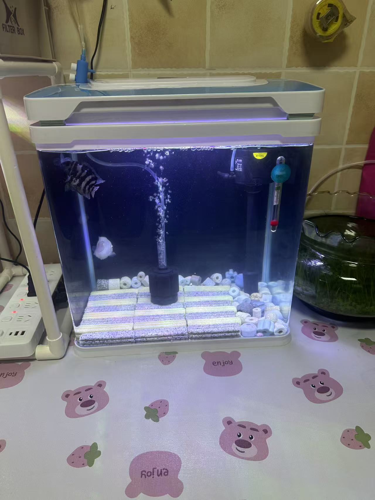 魚缸帶魚整體出售,尺寸40*25*40嘎嘎新,帶LED燈,上過濾,水泵是新買的,可以直接養魚。缸內有裝飾,水質清澈。