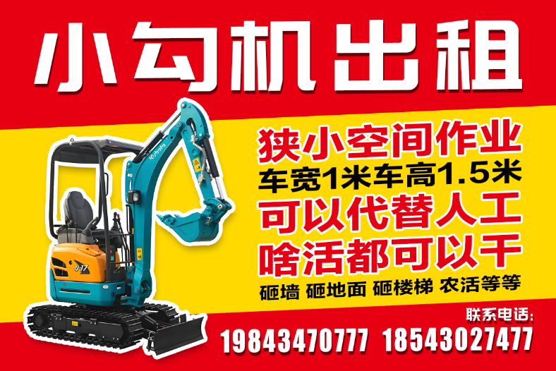 鉤機(jī)出租全新久保田小勾機(jī)出租,狹小空間作業(yè),車寬1米車高1.5米,可以代替人工,啥活都可以干,砸墻、砸地面、砸樓梯、農(nóng)活等等。有需要的可以聯(lián)系我。聯(lián)系電話:19843470777